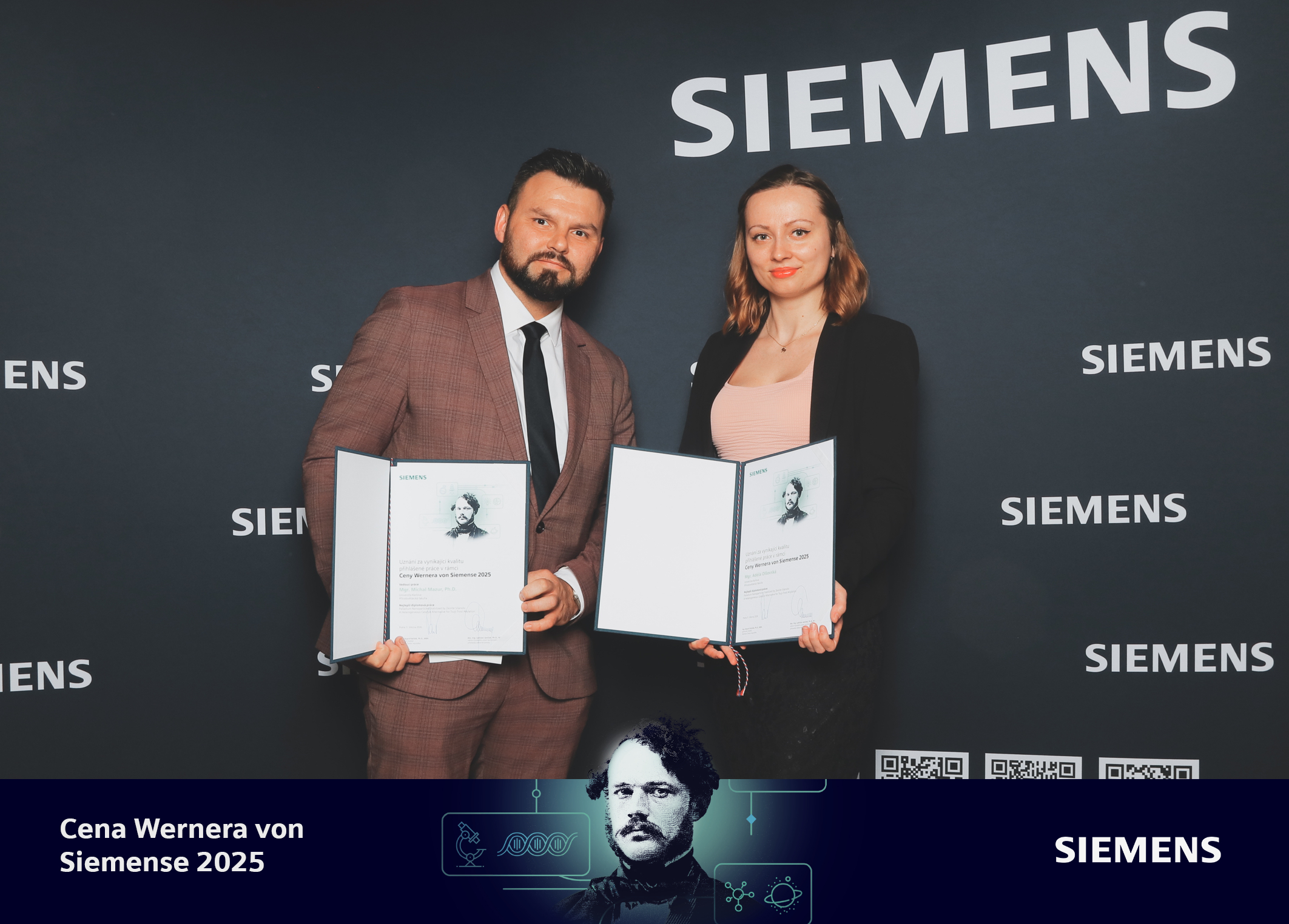 Významného úspěchu v soutěží Ceny Wernera von Siemense 2025 získala doktorandka Přírodovědecké fakulty Univerzity Karlovy Adéla Olšovská. Vědkyně, která je mimo jiné zapojena i do projektu TECHSCALE z operačního programu Jan Amos Komenský, se umístila na 6. pozici v kategorii diplomová práce. Spolu s ní ocenění získal i její školitel Michal Mazur.